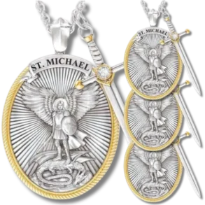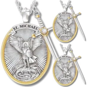 O Colar de São Miguel é uma joia religiosa dedicada ao Arcanjo São Miguel, conhecido como protetor e guerreiro nas tradições cristãs. É um símbolo de fé e proteção.